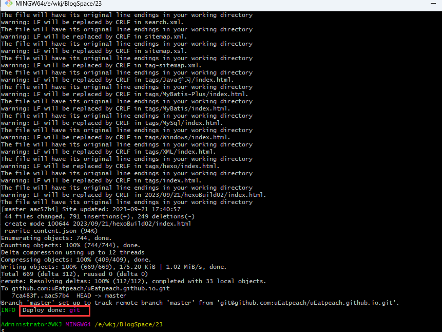 修改好配置后,运行如下命令,将代码部署到 GitHub。